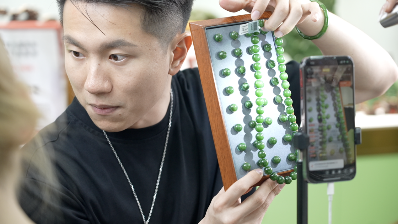 2022年,直播电商浪潮在中国大陆风起云涌,作为社交媒体和电商平台的“重度用户”,吕冠亿察觉到其中千载难逢的机遇,决定暂停自己在英国的学业,结合家族生意开设自己的电商直播间,在玉石领域细分赛道深耕。“从最差的时候一场只卖了几百块钱,到后来慢慢找到窍门单场直播达到六十多万销售额。我在反复的学习磨练中积累了经验,也终于慢慢建立起自己的生意。现在带领着约100人的团队,我也有了足够的信心和底气。”吕冠亿说。