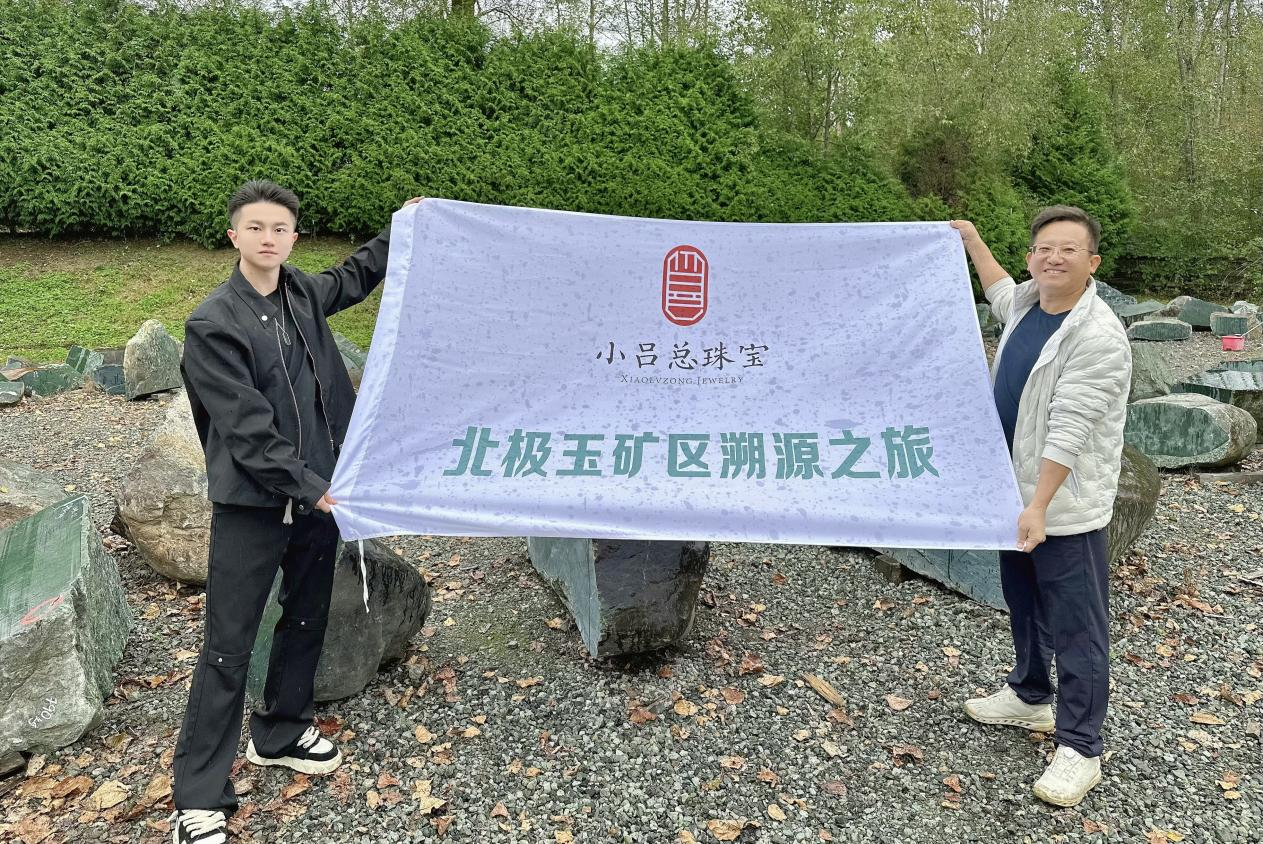 吕冠亿(左)与父亲来到北极玉矿区溯源